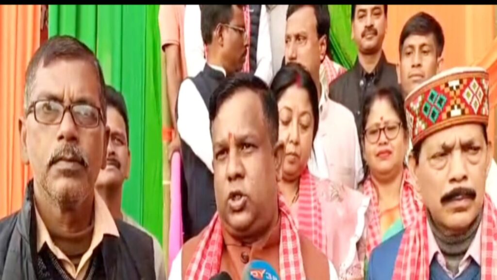 বরাকবাণী প্রতিবেদন,পাথারকান্দি,২৫ জানুয়ারিঃ রাষ্ট্রীয় বিজেপি সভাপতি জেপি নাড্ডার নির্দেশে সমগ্র ভারতবর্ষের সঙ্গে মিল রেখে শনিবার শনবিলের দেবদ্বারে ভারতীয় জনতা পার্টির শ্রী ভূমি জেলা ও ভৈরব নগর মন্ডলের যৌথ উদ্যোগে সংবিধান দিবস উদযাপন করা হয়। অনুষ্ঠানের শুরুতে ভারত মাতা, শ্যামাপ্রসাদ মুখার্জি ও পণ্ডিত দীনদয়াল উপাধ্যায়ের প্রতিকৃতিতে প্রদীপ প্রজ্বলন ও পুষ্পার্ঘ্য অর্পণ করেন উপস্থিত নেতৃবৃন্দ। এতে অংশগ্রহণ করেন বিধায়ক বিজয় মালাকার, জেলা বিজেপি সভাপতি সঞ্জীব বণিক, এস সি বোর্ডের চেয়ারম্যান কৃষ্ণ দাস, রাজ্যসভার সাংসদ মিশন রঞ্জন দাস, শ্রী ভূমি জেলার সহ সভাপতি রথী রঞ্জন দাস, ভৈরব নগর মন্ডল বিজেপির সভাপতি হীরেশ বিশ্বাস, এস সি মোর্চার সভাপতি সুরমণি সরকার এবং ভৈরব নগর মন্ডল বিজেপির সম্পাদক রাজেশ দাস।