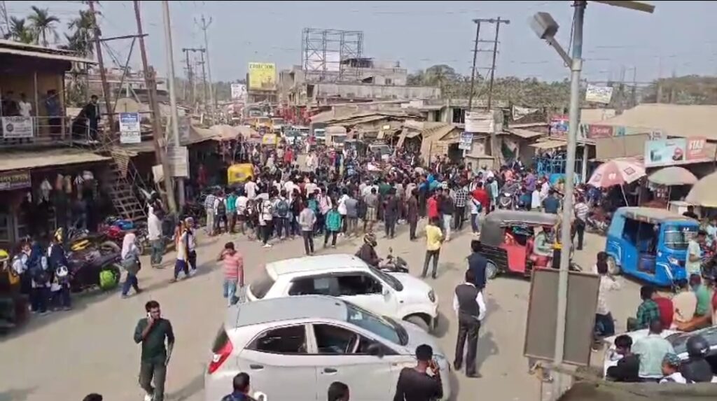 বরাকবাণী প্রতিবেদন, সোনাইঃ, ২৭ জানুয়ারি: শিলচর-আইজল সংযোগকারী ৩০৬ নম্বর জাতীয় সড়কের দুরবস্থা চরম পর্যায়ে পৌঁছেছে। দীর্ঘদিন ধরে সংস্কারের অভাবে সড়কটি চলাচলের অনুপযোগী হয়ে পড়েছে। ধুলোর ঝড় ও কৃত্রিম যানজট স্থানীয় বাসিন্দা থেকে শুরু করে স্কুল-কলেজের শিক্ষার্থীদের জীবন দুর্বিষহ করে তুলেছে। সোমবার, জনগণের ক্ষোভ ফেটে পড়লো। বেলা ১২টার দিকে স্থানীয় ব্যবসায়ী সমিতি, নাগরিক সমাজ এবং স্কুলের ছাত্রছাত্রীরা ঐক্যবদ্ধ হয়ে সোনাবাড়িঘাট এলাকায় জাতীয় সড়ক অবরোধ করেন। আন্দোলনকারীদের দাবি—অবিলম্বে সড়ক সংস্কার করতে হবে এবং যানজট নিরসনে কার্যকর পদক্ষেপ নিতে হবে।